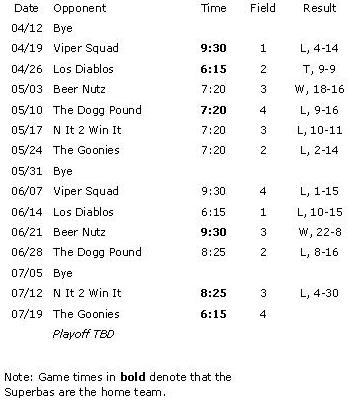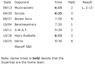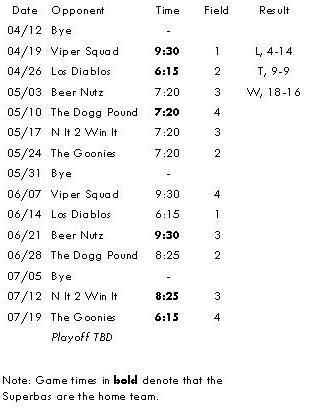 And, of course, the main page at www.superbas.org has information on the next game and the last game, batting leaders, etc.