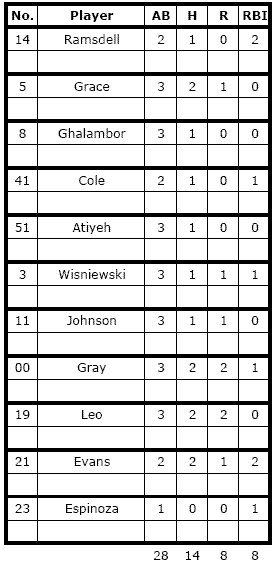 Figuring that we are playing softball, and are certainly not playing in a league similar in reputation or authority as MLB, I took the average number of games played by the team’s players, and multiplied that by 3.1 plate appearances per game, and then multiplied that value by 7/9, since we play 7 innings (compared to the 9 innings played in MLB). As a result, the minimum plate appearances requirement is a moving target, but allows for players to miss a game here and there, and still qualify with the minimum number of plate appearances. The formula looks like this: PAmin = Gavex(3.1)x(7/9) = Gavex(2.4).